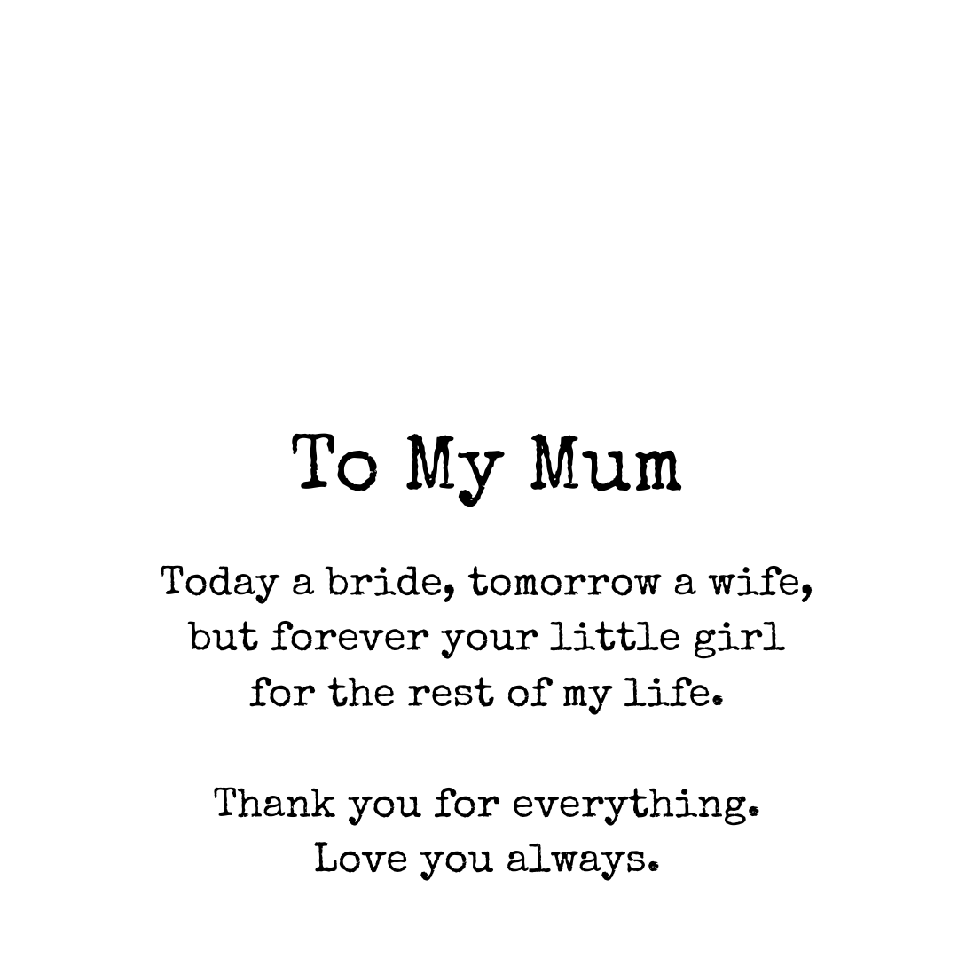 "Today a bride, tomorrow a wife,but forever your little girlfor the rest of my life.Thank you for everything.Love you always."